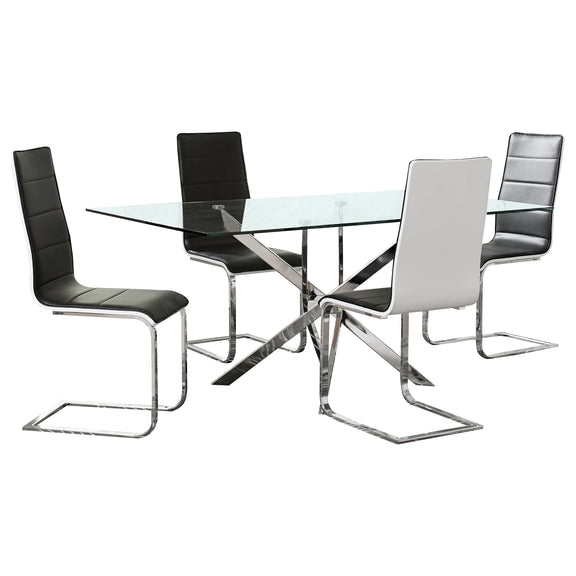LGC107931-S5 Chrome Black and White 5 Piece Rectangular Glass Top Dining Table Set