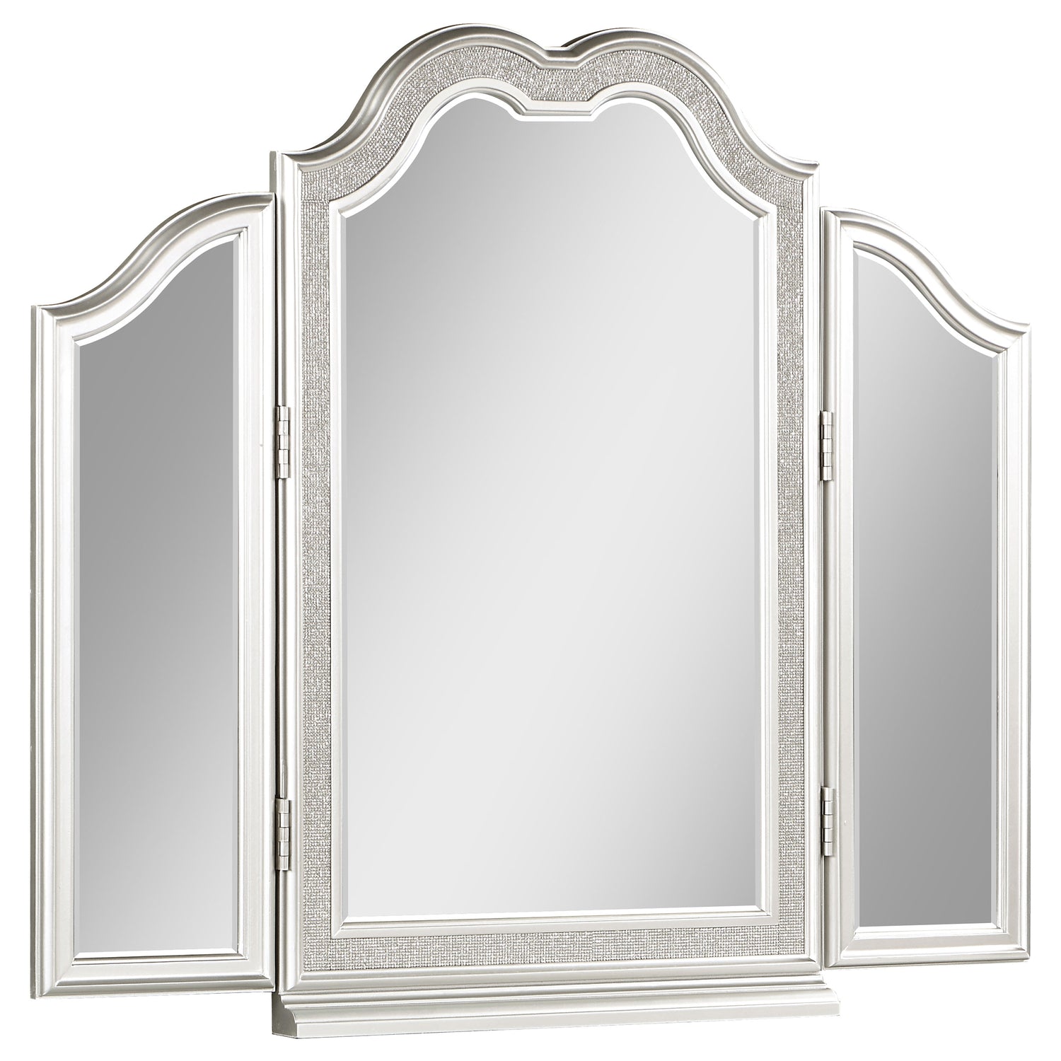 LGC223397 Glitter Silver Finish 4 Drawer Vanity Set With Tri-Fold Mirror