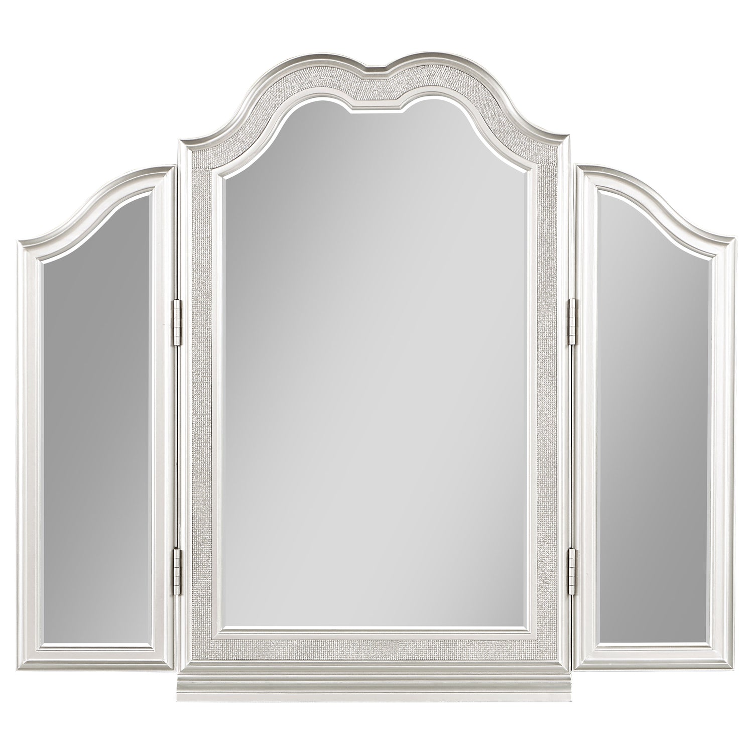 - Adjustable tri-fold mirror with beveled glass and a silver finish ensures a flawless beauty routine