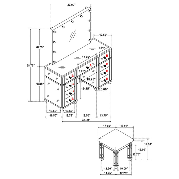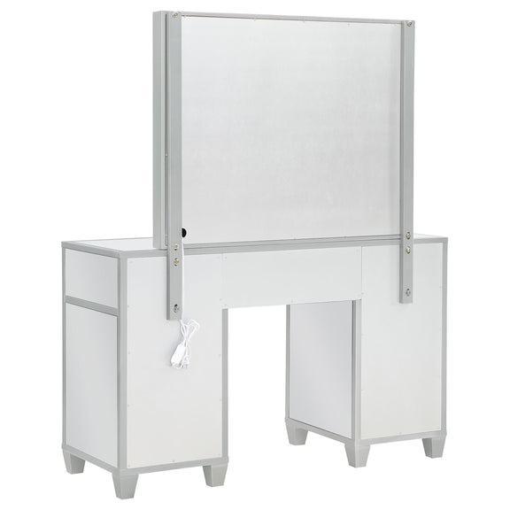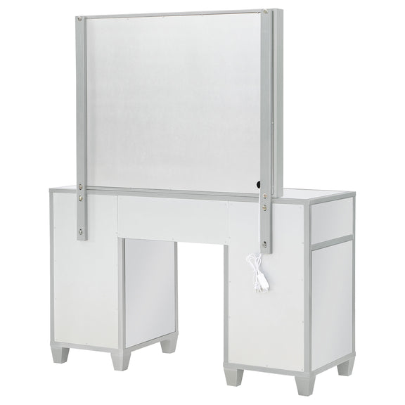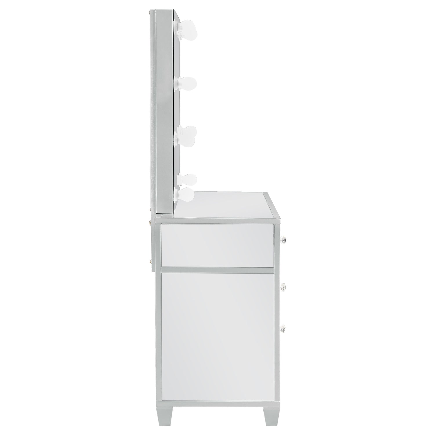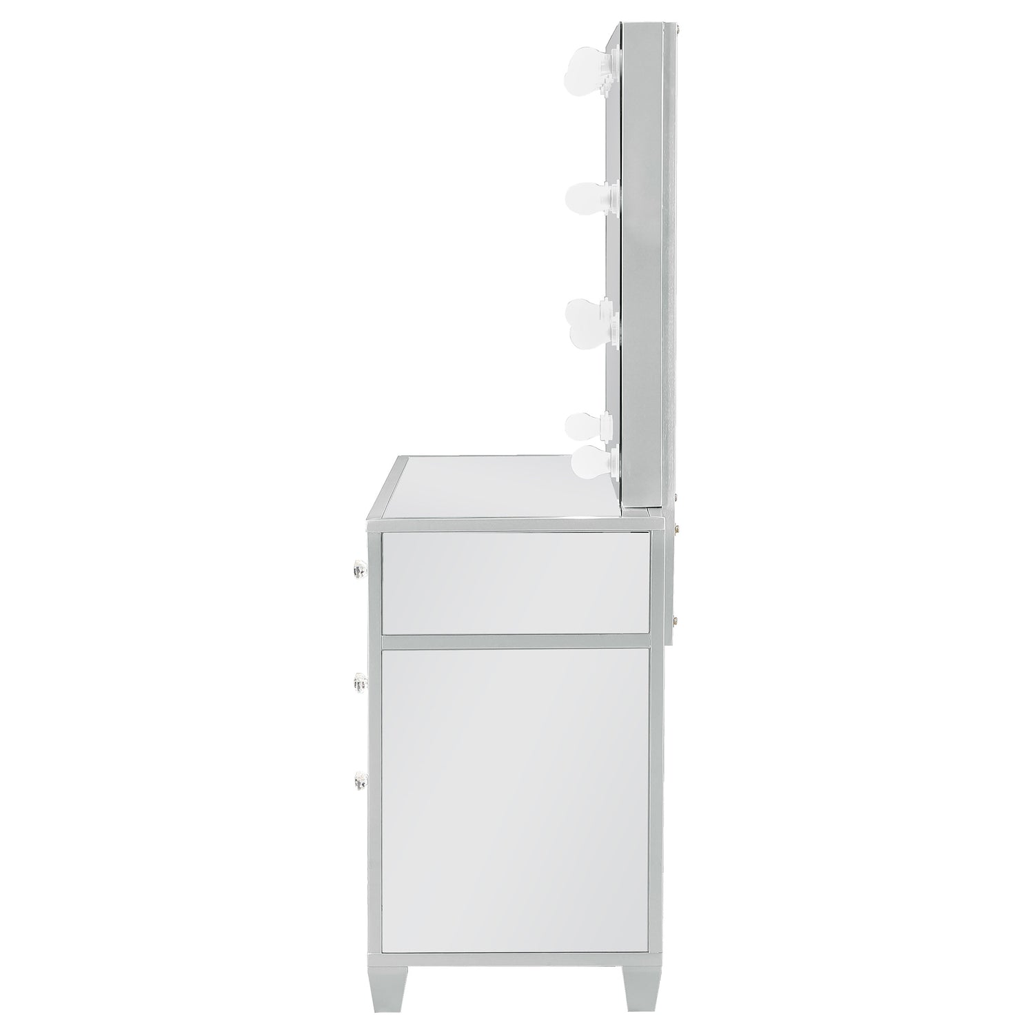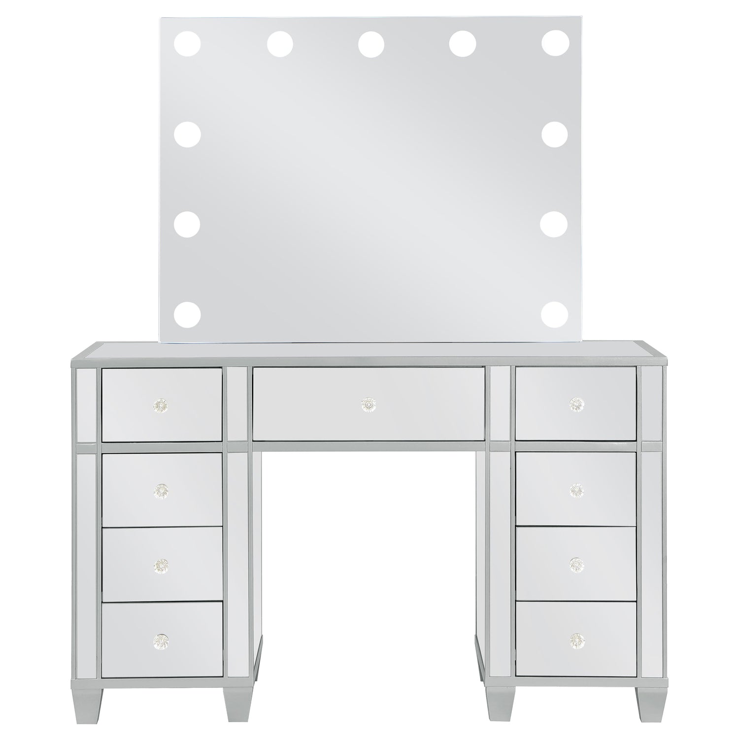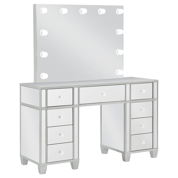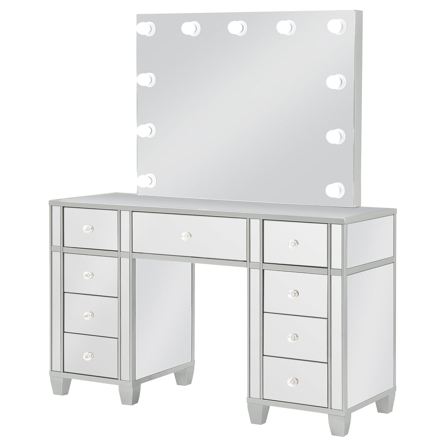 LGC930242 Mirrored 9 Drawer Metallic Silver Vanity Set With Lighted Mirror