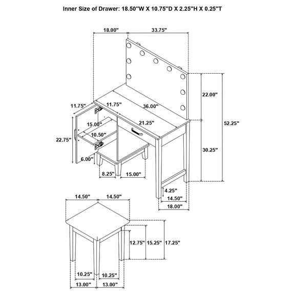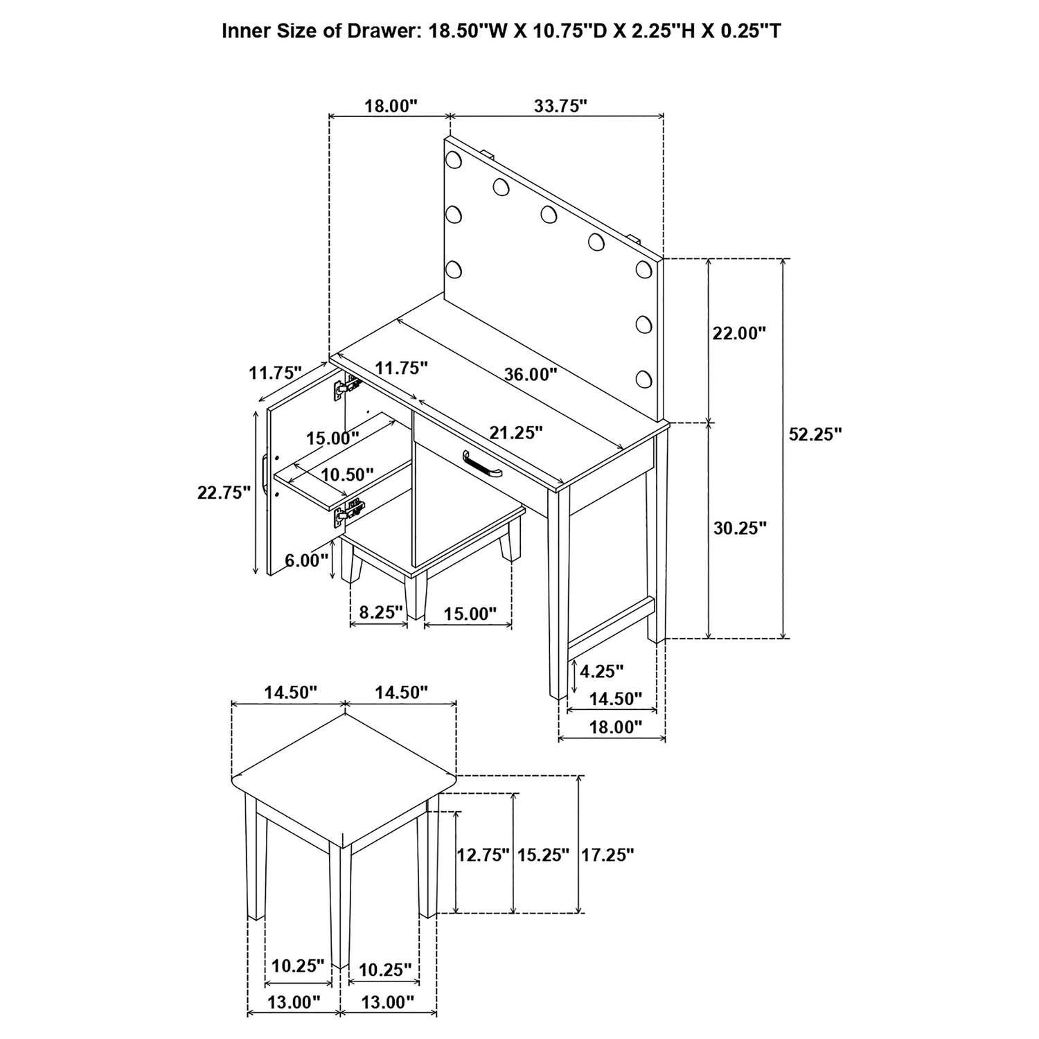 LGC931149 Vanity Set With Light Mirror and White and Gray Stool