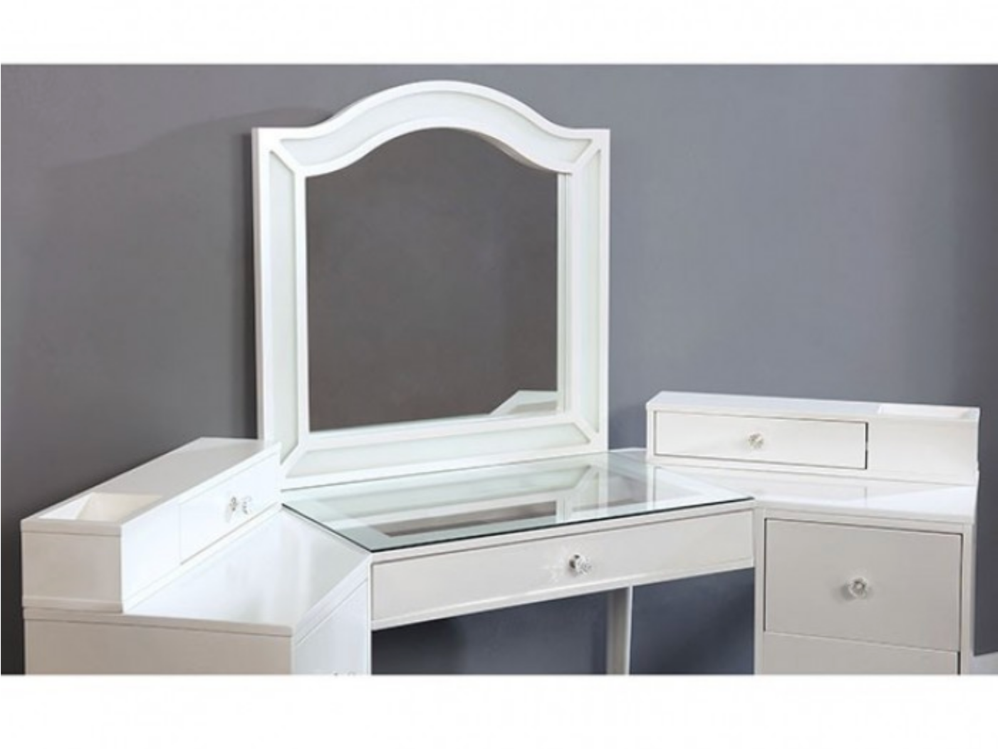 LGFATRACIE Tri Section White Vanity Set With Lighted Mirror and Stool