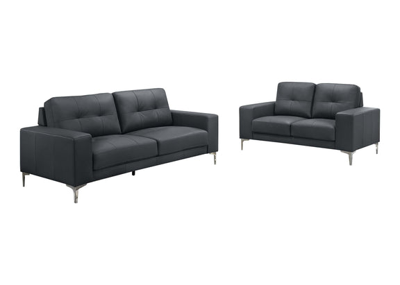 LGPF8417 Black Leather Contemporary Sofa Set
