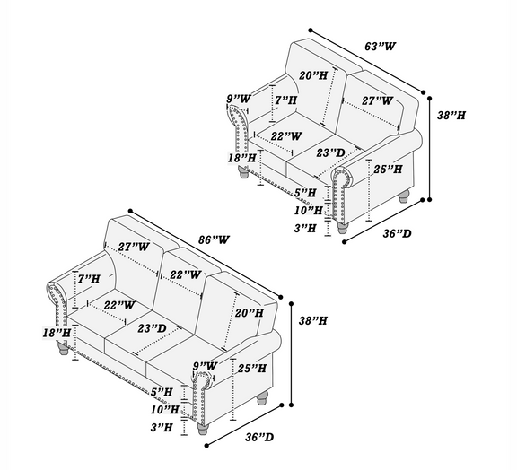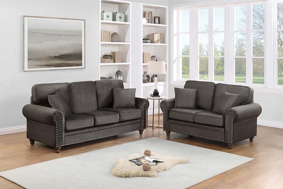 LGPF8439 Dark Coffee Bonded Velvet Sofa Set
