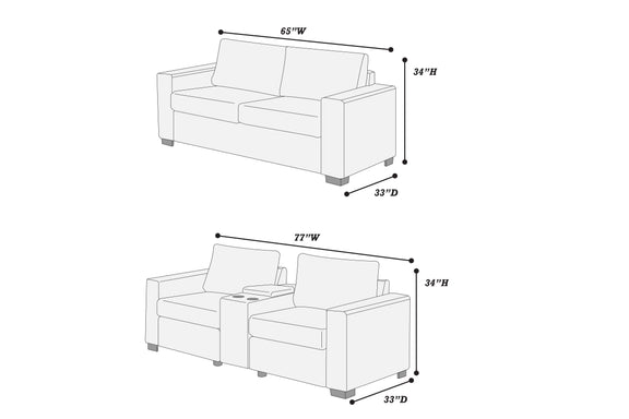 LGPF8459 Dark Gray Corduroy Sofa Set With Charging Station and Cup Holders