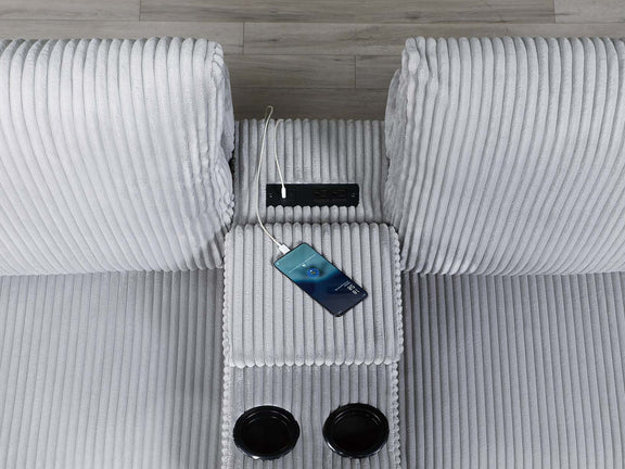LGPF8460 Light Gray Corduroy Sofa Set With Charging Station and Cup Holders